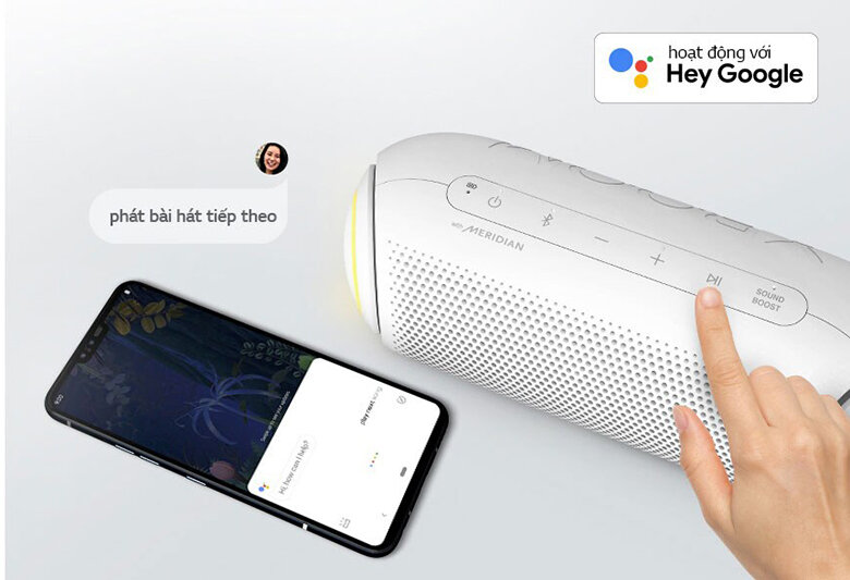 Ngoài ra, trong những cuộc vui hay khi đang bận tay bạn còn có thể sử dụng tính năng điều khiển bằng giọng nói để bật nhạc, bật phát thanh và một số chức năng khác mà không tốn công lại gần loa để thao tác. Nhấn nút phát trong hai giây, sau đó nói để kích hoạt Google Assistant trên điện thoại Android™ hoặc Siri trên iOS. Rảnh tay làm mọi việc mà vẫn có thể thưởng thức những bản nhạc yêu thích trên loa LG Bluetooth mini PL7W.