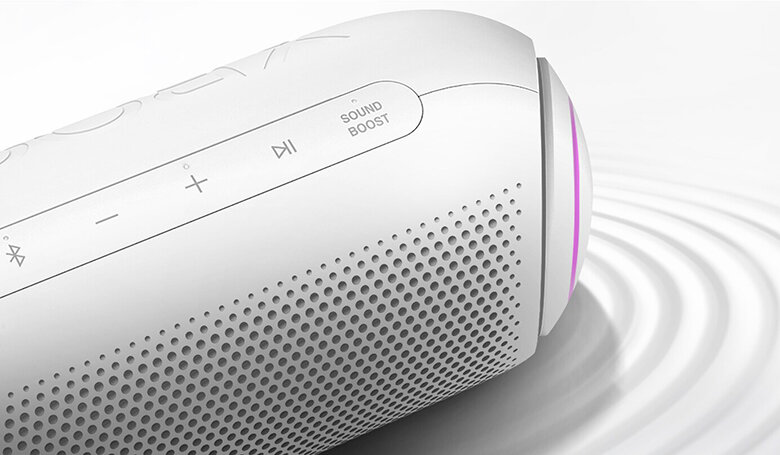 Chỉ cần với một nút nhấn "Sound Boost", loa LG Xboom PL7W sẽ giúp bạn khuếch đại âm thanh đang phát, đưa giai điệu lan tỏa mạnh mẽ khắp không gian. Ngay lập tức không khí bữa tiệc sẽ được khuấy động đầy hứng khởi và cuồng nhiệt hơn.