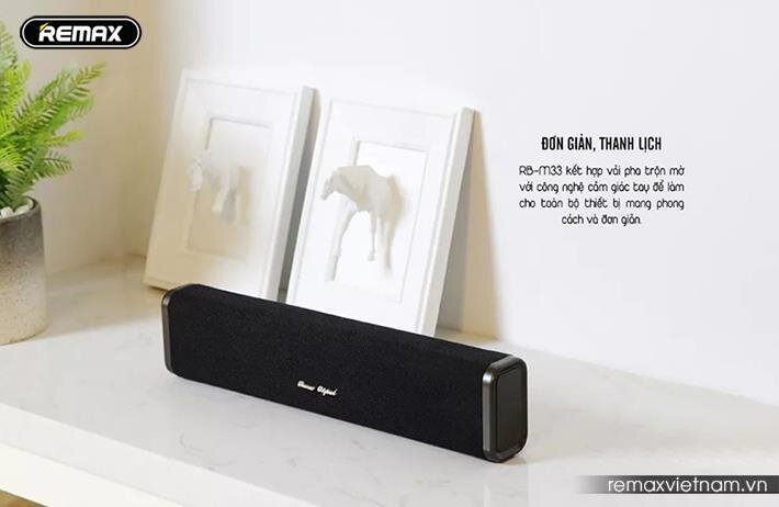 Loa bluetooth Remax RB-M33 là một sản phẩm hot mới xuất hiện gần đây đang được tín đồ âm thanh săn đón. Có thể nói, Remax M33 là một sản phẩm sở hữu những đường nét thiết kế đơn giản nhưng toát lên vẻ thanh lịch. Remax RB-M33 là chiếc loa Bluetooth không dây có hình dạng dài hình chữ nhật giống như một thanh "kẹo Socola khổng lồ". Bề mặt sản phẩm được phủ một lớp vải pha trộn mờ kết hợp công nghệ xử lý hiện đại mang đến cảm giác phong cách và dễ chịu khi chạm vào.
