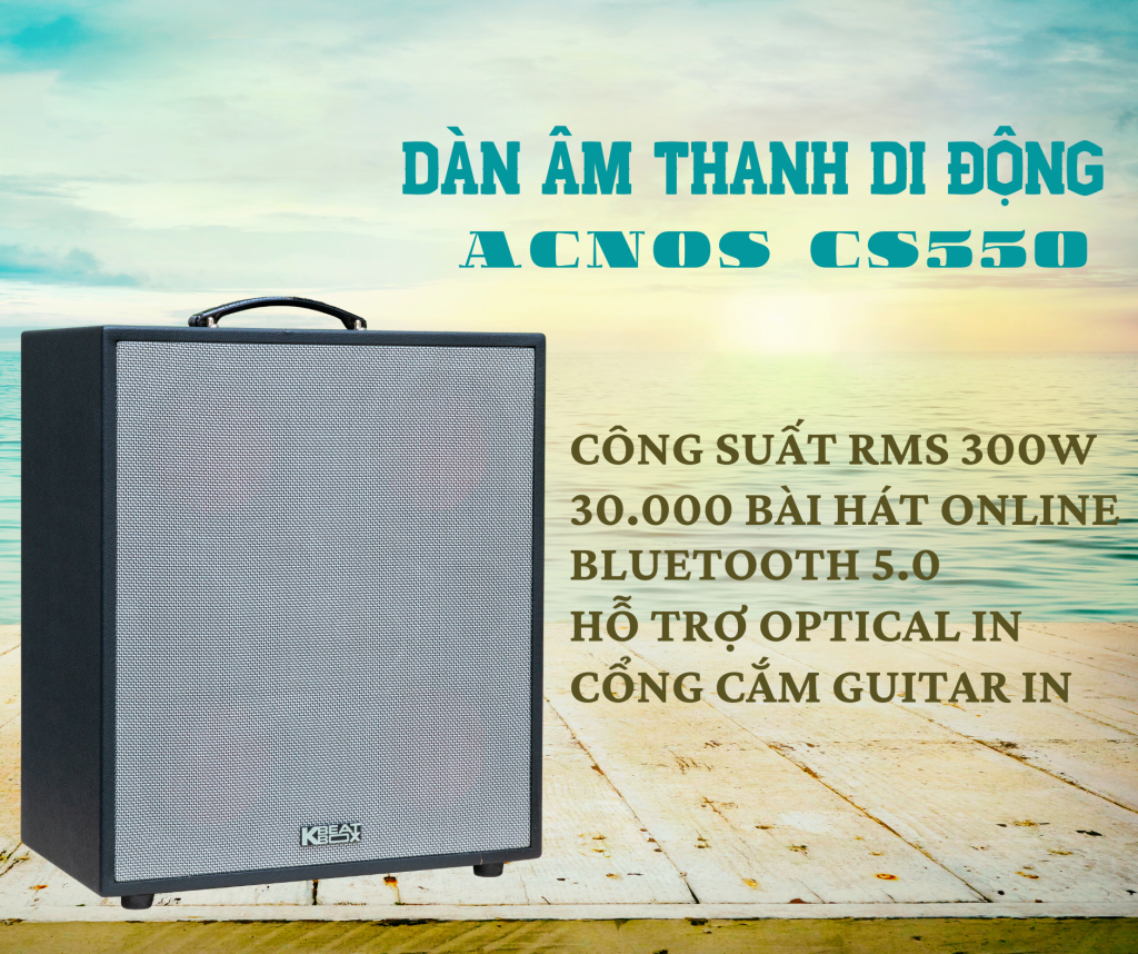ACNOS CS550 – dàn Karaoke di động với Chất âm tuyệt hảo – Kiểu dáng quý phái. Công suất RMS lên đến 300W cho âm trầm mạnh mẽ. Hàng chục ngàn bài hát chất lượng cao online và offline, chọn bài trộn chung YouTube và nguồn nhạc chọn lọc qua app CloudKaraoke. Hiển thị karaoke trên bảng LED. Điều khiển và chọn bài hát trên smartphone, tablet. Hỗ trợ ghi giọng hát và hình ảnh.
