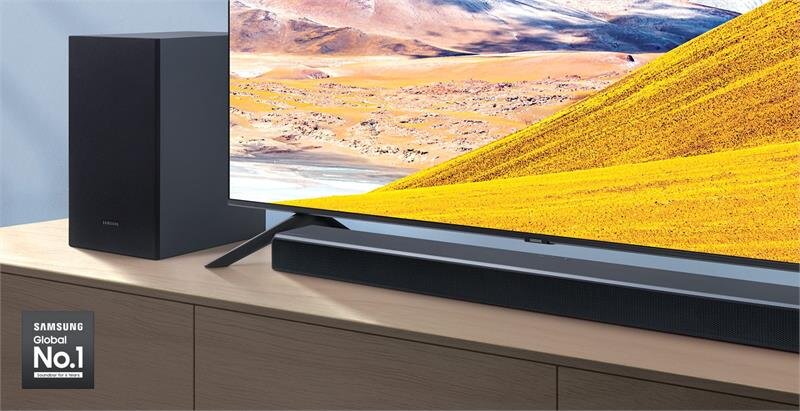 Loa thanh Samsung tự động phân tích và tối ưu âm thanh trên từng khung hình hiển thị tương ứng. Thoải mái cuồng nhiệt cùng những trận cầu kịch tính hay dễ dàng lắng nghe trọn vẹn những cuộc hội thoại trong phim với thanh âm sắc nét phát ra từ loa thanh.