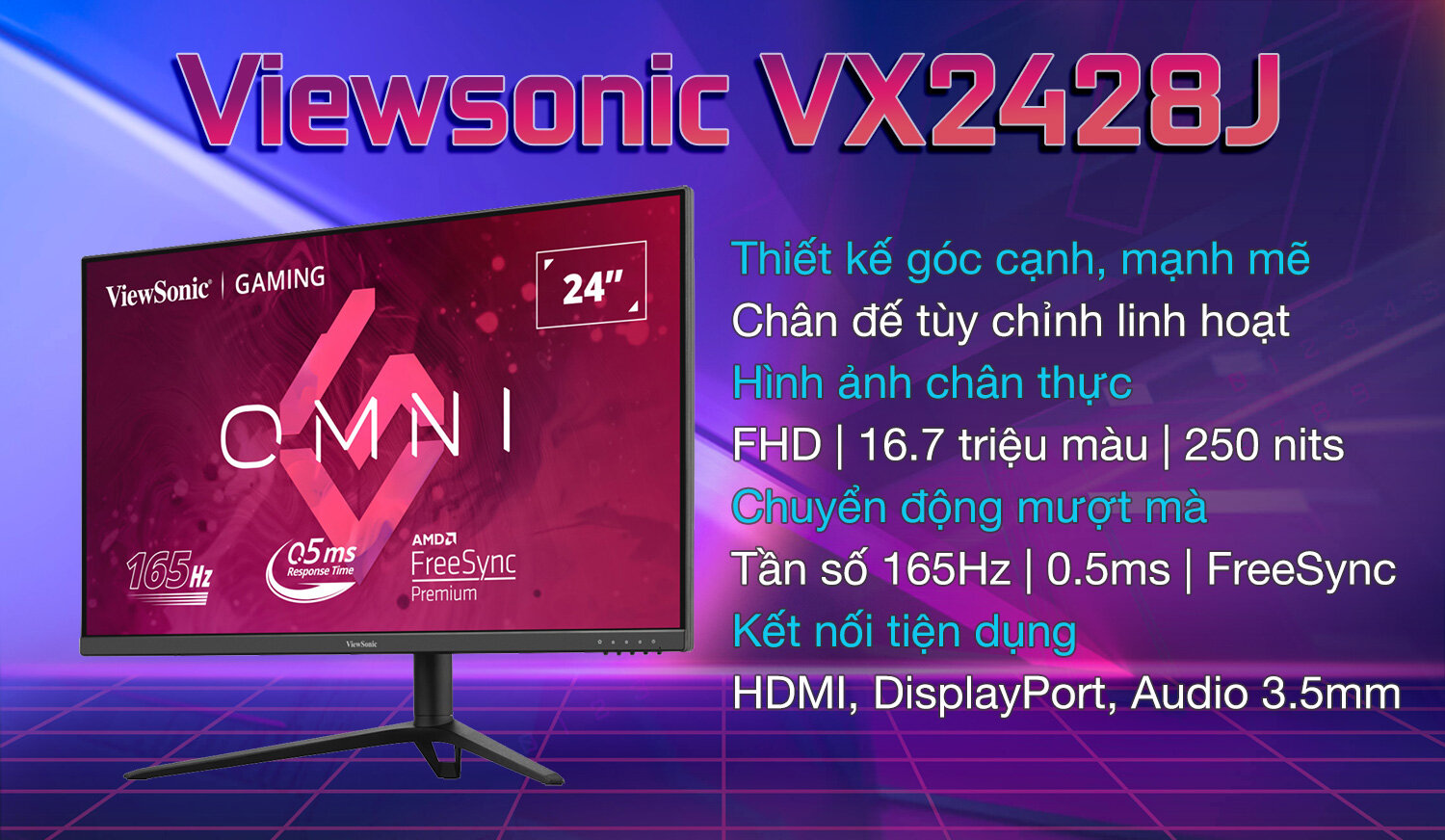 Thông số kĩ thuật Màn hình Gaming ViewSonic VX2428J 24 inch FHD IPS 165Hz