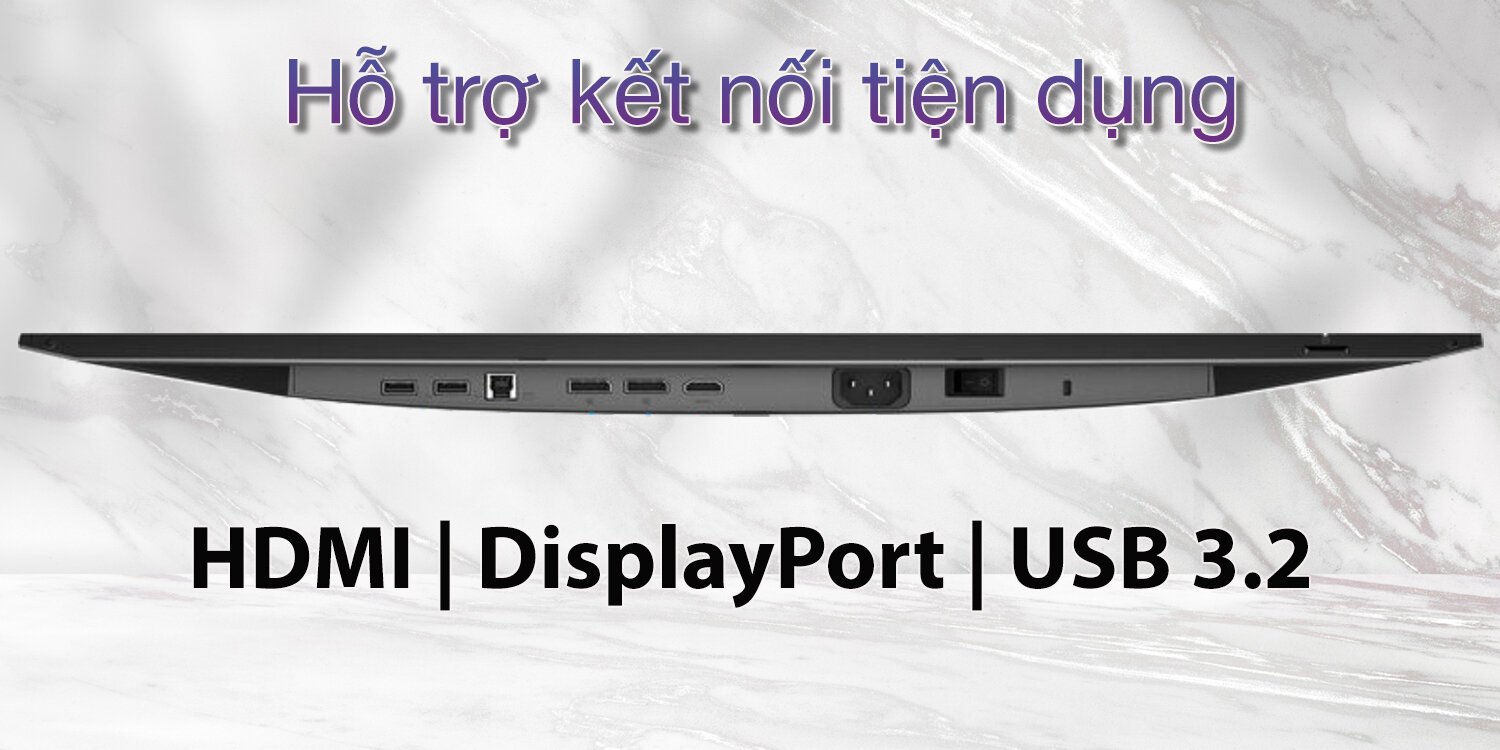 Màn hình hỗ trợ đầy đủ các cổng kết nối USB 3.2, HDMI, DisplayPort SuperSpeed USB 5 Gbps upstream port, giúp bạn dễ dàng kết nối với các thiết bị ngoại vi khác