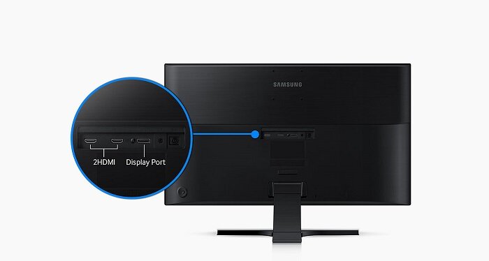 LCD Samsung 28'' LU28E590DS/XV được trang bị các cổng kết nối phổ biến để kết nối các thiết bị bên ngoài như các thiết bị AV qua cổng DisplayPort 2.1 và 2 cổng HDMI khác nhau.