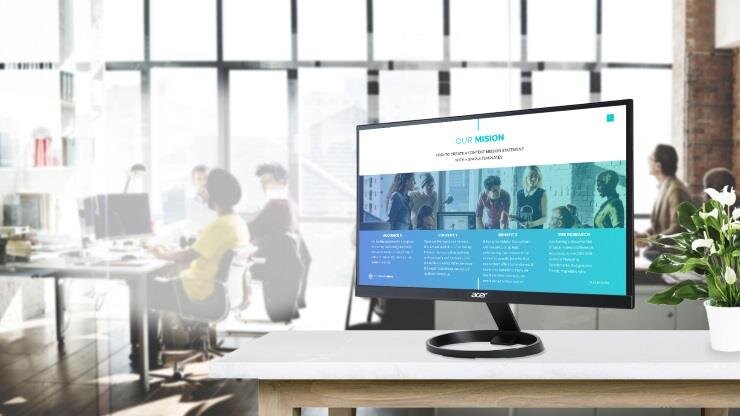 Hình ảnh sắc nét chất lượng Độ phân giải Full HD trên tấm nền IPS mang lại hình ảnh cực kỳ sắc nét và sống động và chân thực ở mọi góc nhìn. Độ tương phản động cực cao 100.000.000:1 càng làm cho độ hiển thị thêm sắc nét, và có chiều sâu hơn trên màn hình doanh nghiệp Acer 21.5 inch R221QB