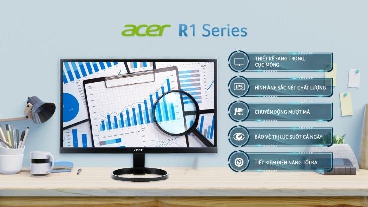 THIẾT KẾ SANG TRỌNG, CỰC MỎNG Màn hình LCD Acer 21.5 inch R221QB là màn hình doanh nghiệp có thiết kế hiện đại cực kỳ mỏng chỉ 6.6mm, và tràn viền, mang lại diện tích hiển thị lớn hơn. Chân đế cách điệu thời thượng, mang lại không gian làm việc hiện đại.