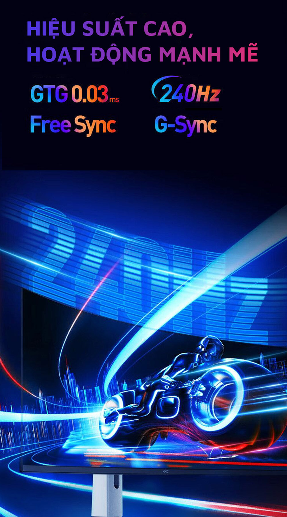 Tần số quét 240Hz giúp màn hình phản hồi mượt mà, thao tác trò chơi ở hiệu suất cao hơn so với đối thủ trong mọi trận đấu. Độ trễ tín hiệu siêu nhanh ở mức 0.03ms GtG sẽ cải thiện đáng kể vấn đề nhòe do chuyển động tốc độ cao. Các chi tiết trong khuôn hình sẽ sắc nét, rõ ràng hơn, giúp người chơi đưa ra những quyết định nhanh chóng, chính xác nhất.