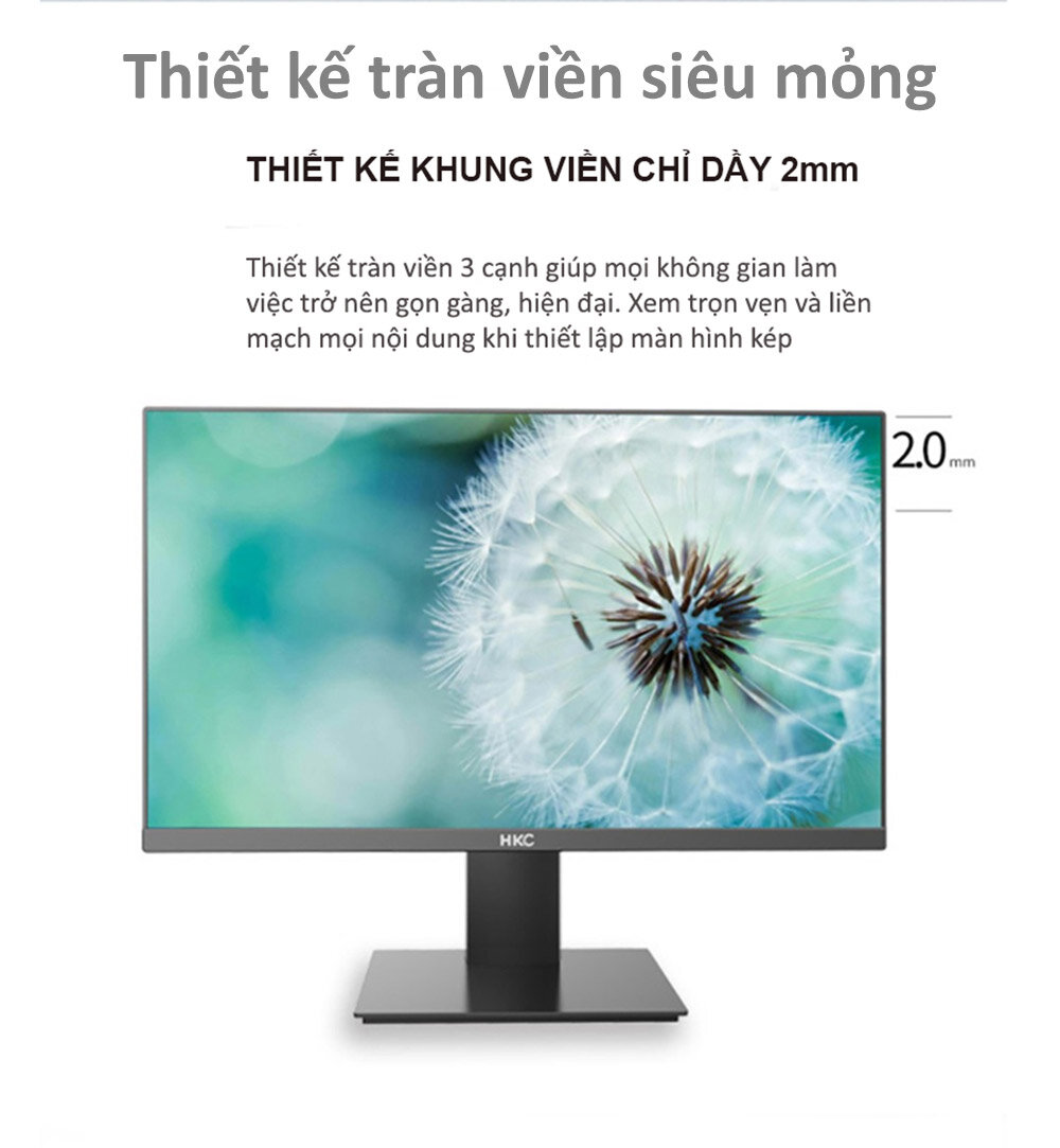 Dù nằm trong phân khúc phổ thông, nhưng HKC MB21V13-S vẫn có sức thu hút của mình. Màn được trang bị cạnh viền siêu mỏng, khung viền chỉ vỏn vẹn có 2mm, đủ để bắt mắt khách hàng. Kiểu dáng hiện đại, gọn gàng tăng cảm giác nội dung liền mạch khi chúng ta thiết lập đa màn hình.