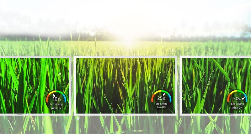 • Ở chế độ Tự Động, công nghệ tiết kiệm năng lượng giúp giảm độ sáng màn hình dựa trên độ phát quang màn hình trong khu vực màu đen, tiết kiệm năng lượng lên đến 10%. • Độ sáng màn hình có thể điều chỉnh từ 25% lên đến tối đa 50%.