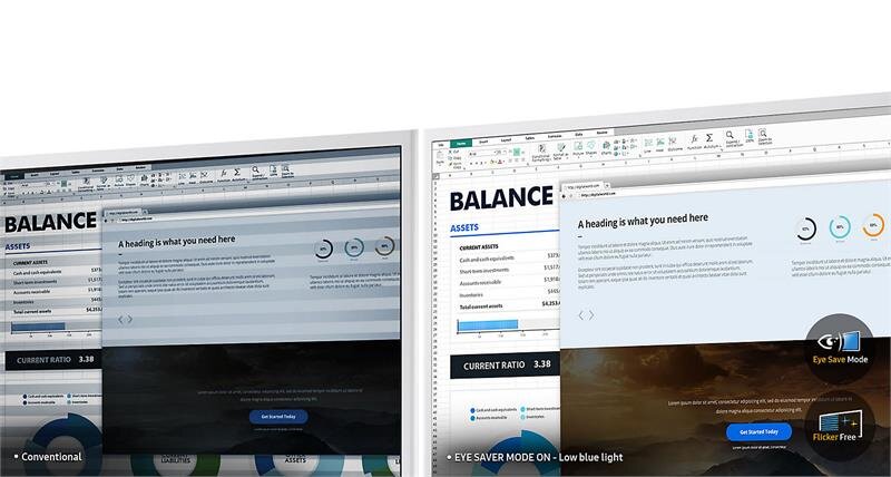Chế độ Bảo Vệ Mắt: Các bước sóng ánh sáng màu xanh làm kích thích võng mạc, gây mỏi mắt, vì vậy Chế độ chống mỏi mắt giúp mắt dễ chịu hơn bằng cách giảm độ phát màu xanh hiệu quả. Chống Nhấp Nháy: công nghệ chống nhấp nháy giúp giảm độ nhấp nháy giúp bạn nhìn màn hình dễ chịu hơn.