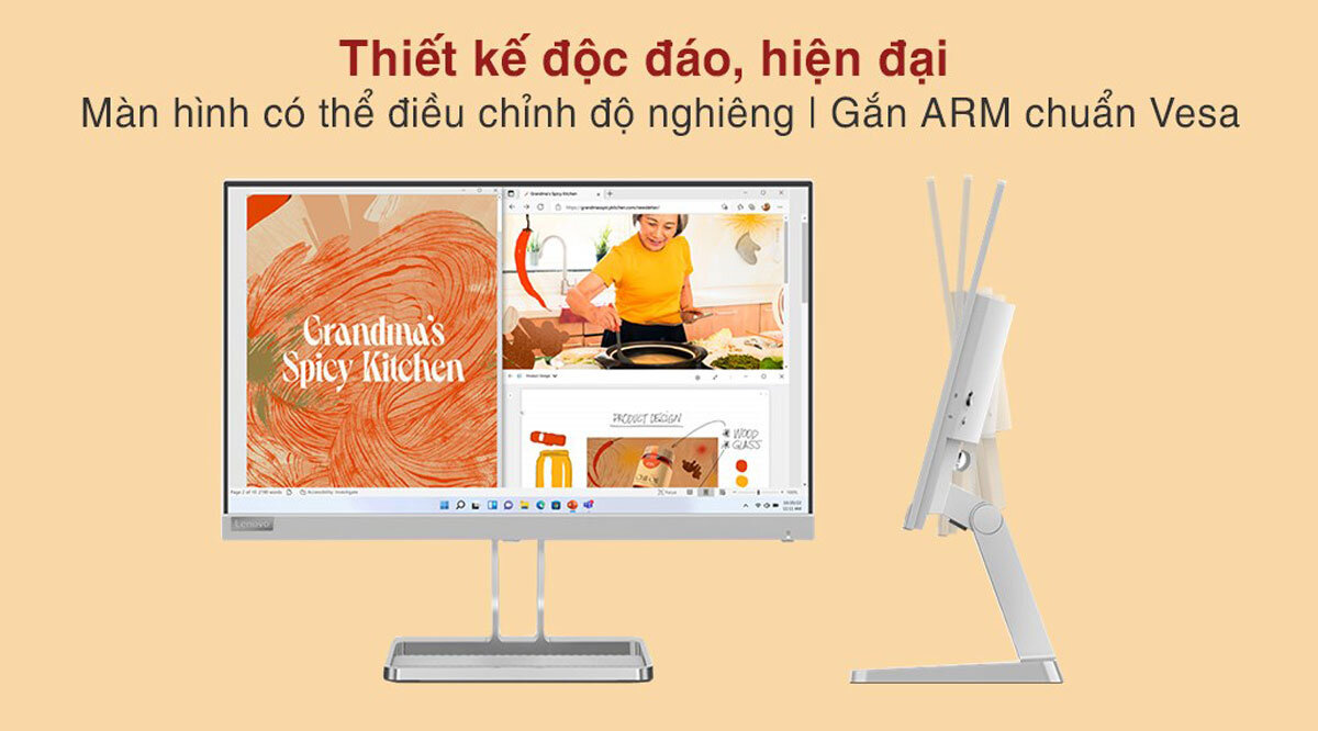 Lenovo L22i-40 gây ấn tượng với thiết kế đơn giản nhưng không kém phần tinh tế. Chân đế được thiết kế thông minh, cho phép người dùng điều chỉnh độ cao và góc nghiêng màn hình một cách dễ dàng, giúp bạn tìm được tư thế làm việc thoải mái nhất.