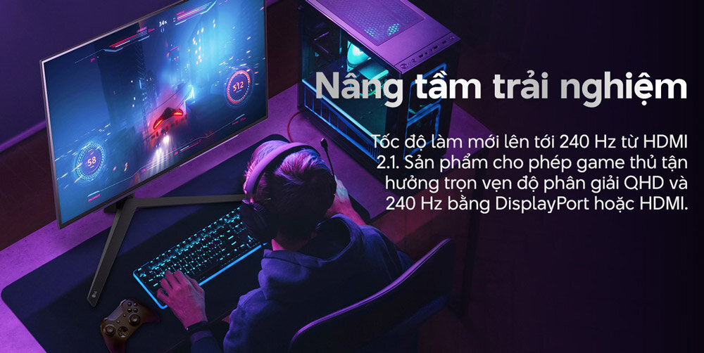 Tần số quét 240Hz giúp màn hình hiển thị hình ảnh mượt mà hơn, đặc biệt là trong các trò chơi có tốc độ nhanh như bắn súng góc nhìn thứ nhất (FPS) hay đua xe. Với tần số quét cao, mỗi khung hình được làm mới nhanh chóng, giảm thiểu hiện tượng nhòe và giật hình, giúp game thủ dễ dàng theo dõi và phản ứng kịp thời với các tình huống trong game.