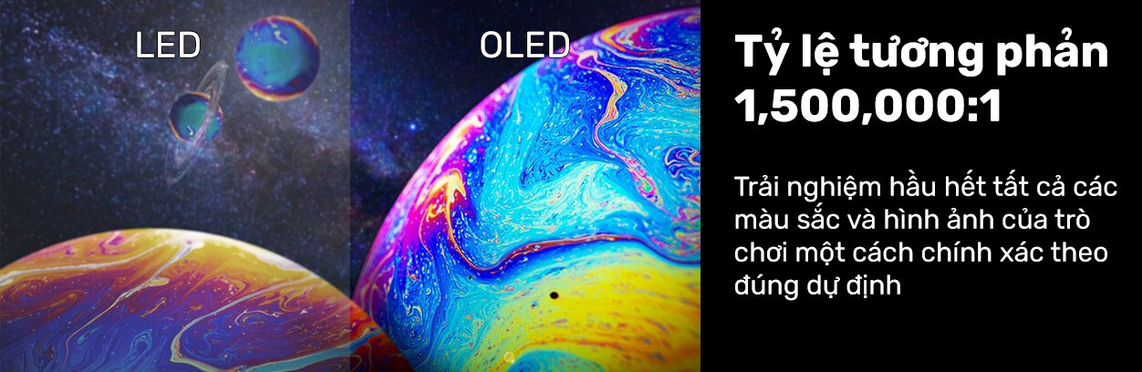 Màn hình tự hào khi có tỷ lệ tương phản vô hạn nhờ các pixel tự phát sáng có thể tắt hoàn toàn để tạo ra màu đen thực sự. Hơn nữa, vì không có đèn nền sẽ không bị chảy máu đèn nền, lóa sáng, phát sáng IPS/VA hoặc các hiện tượng hình ảnh khác liên quan đến màn hình LCD!