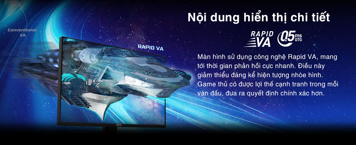 Thời gian phản hồi thấp 0.5ms GtG giúp giảm thiểu hiện tượng bóng mờ, nhòe hình, đặc biệt khi chơi các game có tốc độ nhanh, chuyển động nhiều. Hình ảnh trở nên sắc nét hơn, chi tiết hơn, giúp bạn dễ dàng nhận biết các đối tượng trên màn hình. Kết hợp với tần số quét cao, thời gian phản hồi thấp giúp bạn có được trải nghiệm chơi game mượt mà, không bị gián đoạn.