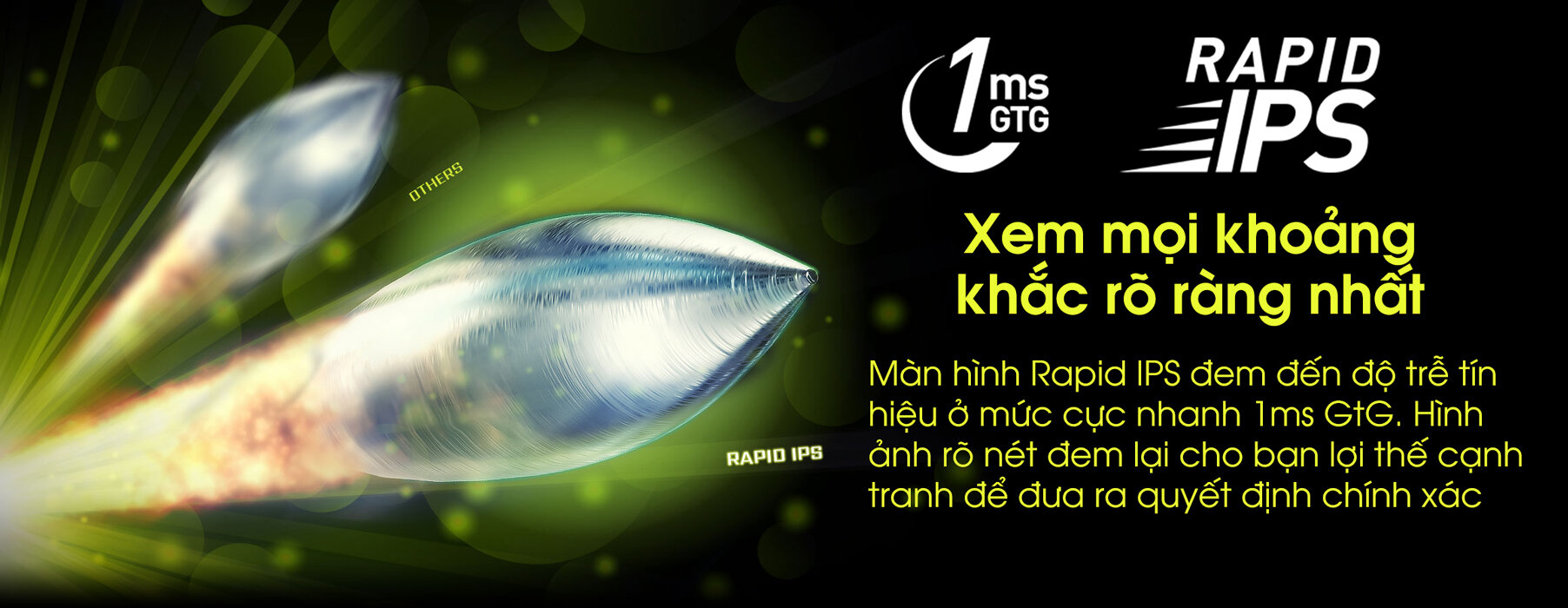 Màn hình MSI MAG 256F có tần số quét lên đến 180Hz, giúp giảm thiểu hiện tượng giật lag và mang lại trải nghiệm chơi game mượt mà. Thời gian phản hồi chỉ 1ms, đảm bảo hình ảnh chuyển động nhanh chóng và rõ ràng. Ngoài ra, công nghệ đồng bộ Adaptive-Sync giúp loại bỏ hiện tượng xé hình và giật hình, mang lại trải nghiệm chơi game liền mạch và thú vị.