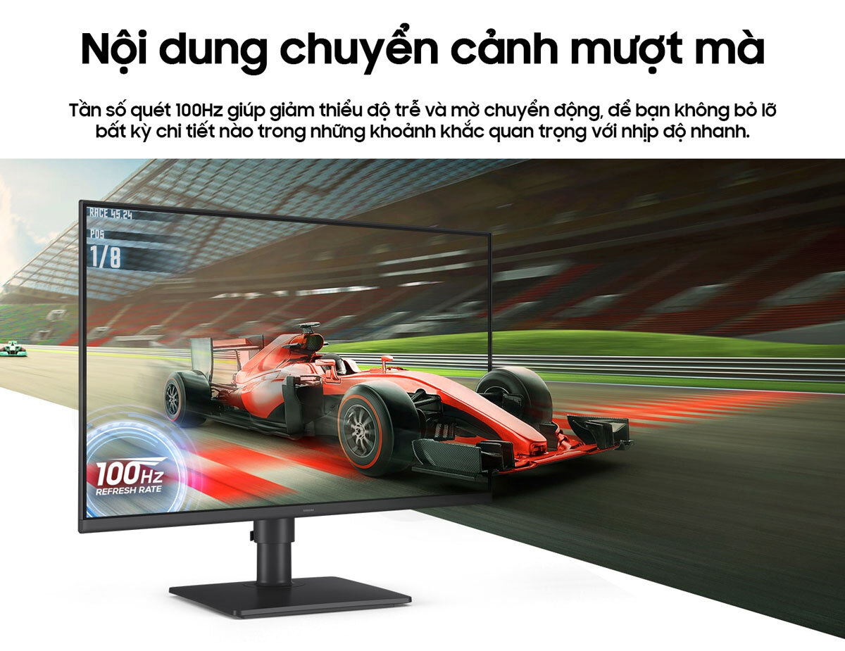 Điểm nổi bật của màn hình LS22D400GAEXXV là tốc độ làm mới 100Hz, cao hơn so với tiêu chuẩn 60Hz của hầu hết các màn hình thông thường. Tốc độ làm mới cao giúp hình ảnh chuyển động mượt mà hơn, giảm thiểu tình trạng xé hình, nhòe hình, đặc biệt khi chơi game hoặc xem phim hành động.