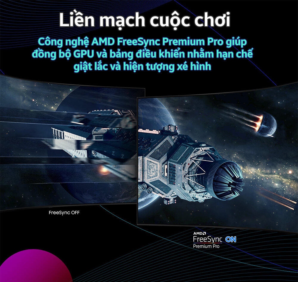 Tính năng VRR (Tần số quét biến thiên) cùng công nghệ AMD FreeSync Premium Pro giúp đồng bộ GPU và bảng điều khiển nhằm hạn chế giật lắc và hiện tượng xé hình. Những trận game đòi hỏi thao tác nhanh và phức tạp sẽ luôn ổn định và không lo giật hình, làm tăng khả năng chiến thắng của bạn.