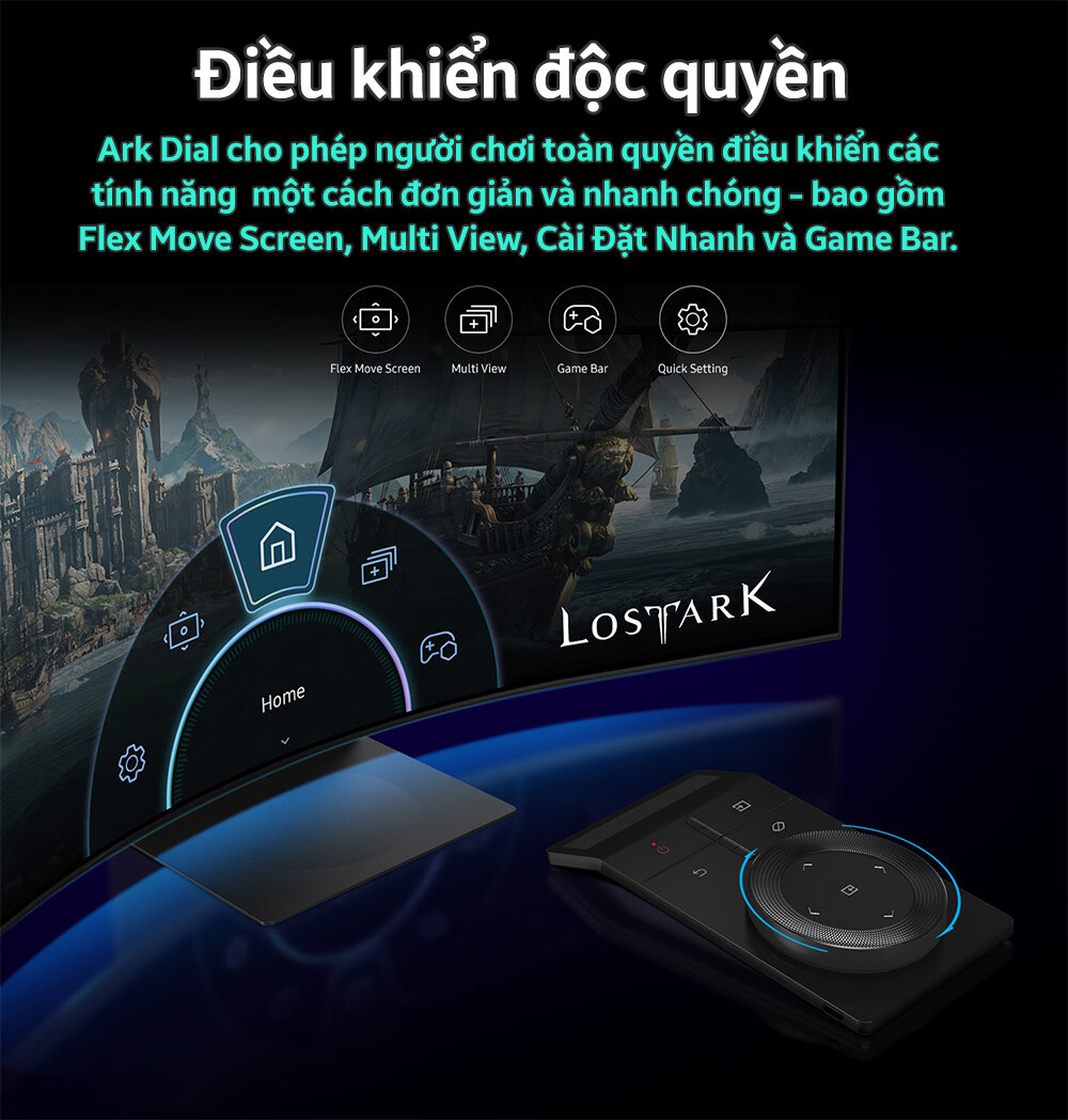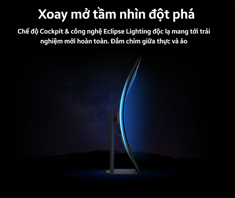 Chọn vị trí chiến đấu hoàn hảo với Chế độ Cockpit khi xoay màn hình. Sử dụng Ark Dial để dễ dàng điều chỉnh kích thước và tỷ lệ màn hình, thưởng thức nhiều nguồn nội dung cùng một lúc chỉ với một lần chạm. Cảm giác như bạn đang ở trong một buồng lái của một phi thuyền chuyên nghiệp. Xoay dọc màn hình sang Chế độ Cockpit với chức năng HAS điều chỉnh độ cao, nghiêng và xoay cho bạn toàn quyền điều khiển để có vị trí và không gian màn hình tối ưu