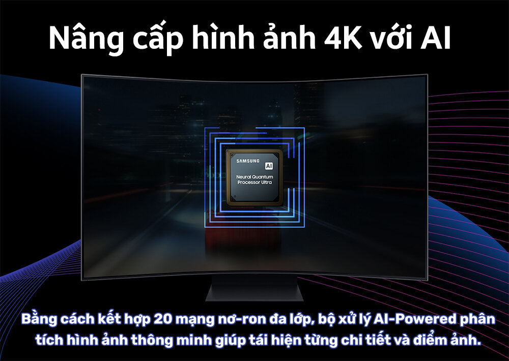 Màn hình tự động điều chỉnh độ sáng, khuếch đại độ tương phản và cải tiến nâng cấp độ phân giải của bất kỳ nội dung nào bạn đang xem. Kiến tạo và tự nâng cấp cho bạn trải nghiệm chất lượng hình ảnh 4K tối ưu chưa từng có. Thay vì chỉ sử dụng một mạng mô phỏng thần kinh nhân tạo để phân tích dữ liệu hình ảnh, bộ xử lý Neo Quantum 4K sử dụng dữ liệu được tạo ra từ 20 mạng mô phỏng thần kinh nhân tạo giúp tăng cường đến từng chi tiết theo chuẩn 4K cho mọi nội dung.