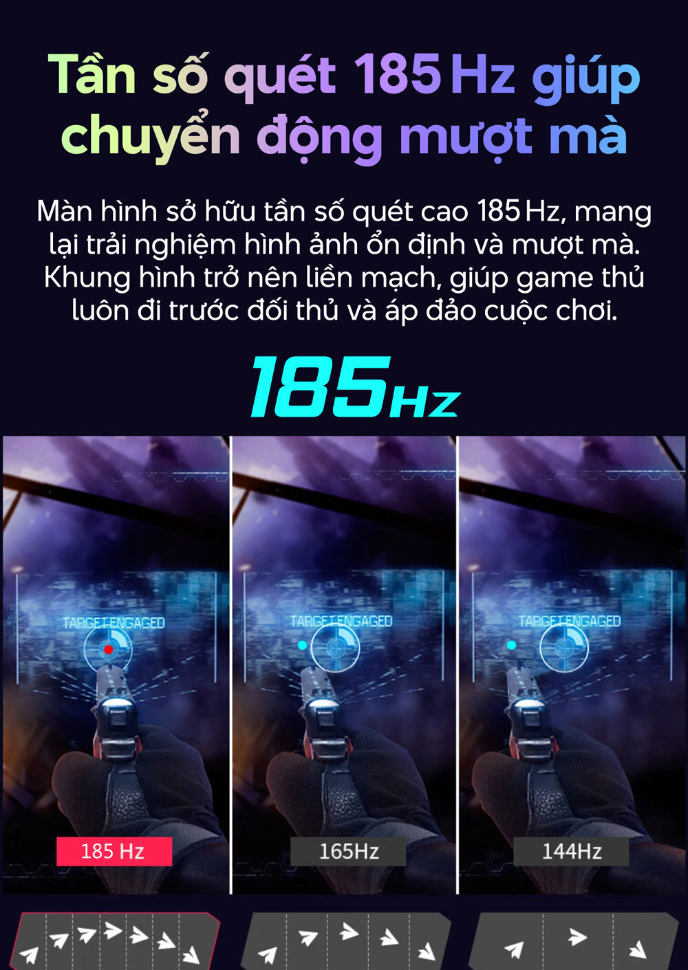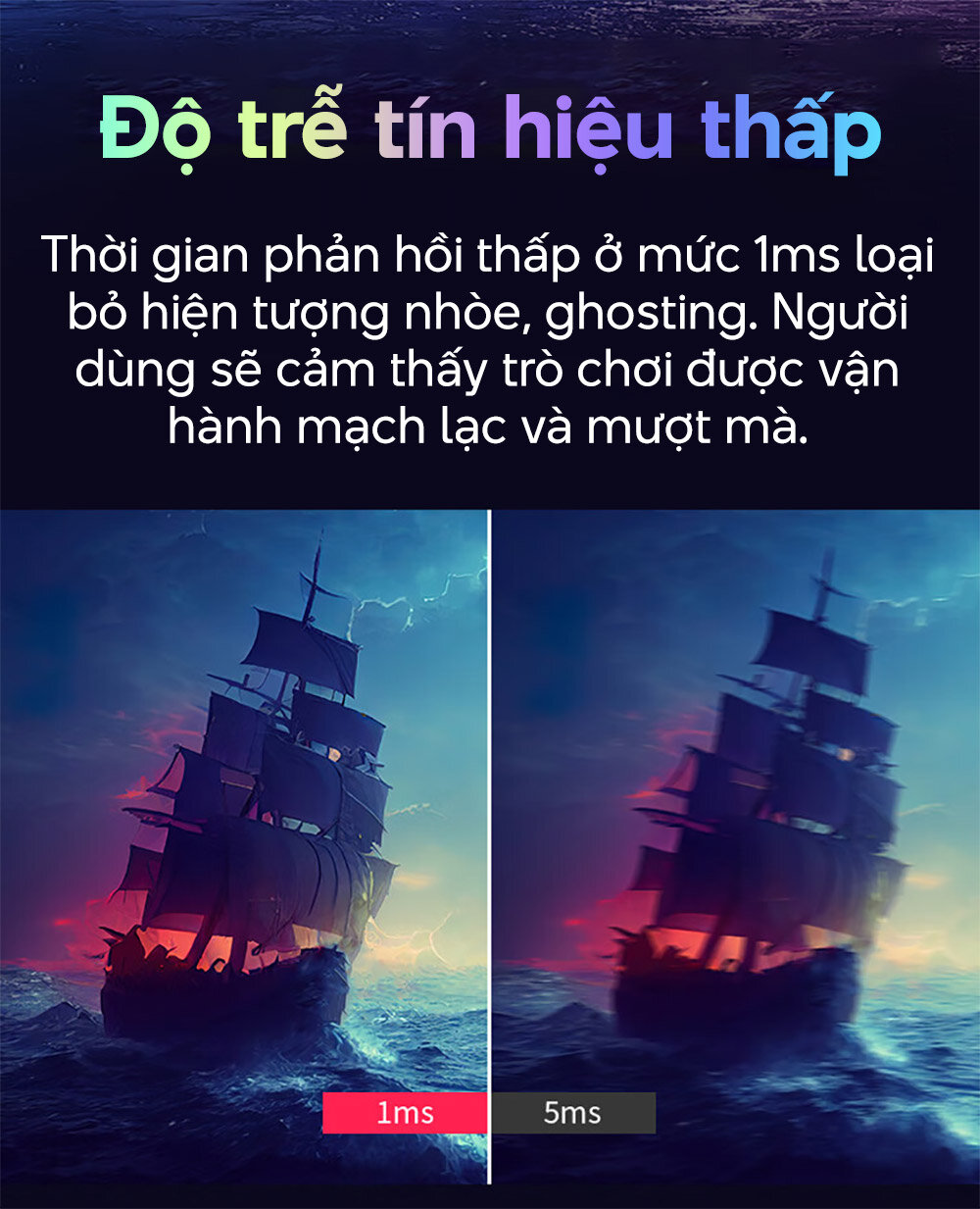 Đảm bảo chuyển tiếp điểm ảnh mượt mà và màu sắc sống động, hiển thị ngay cả hành động nhanh nhất trên chiến trường với độ rõ nét tuyệt đẹp với hiện tượng bóng mờ tối thiểu.