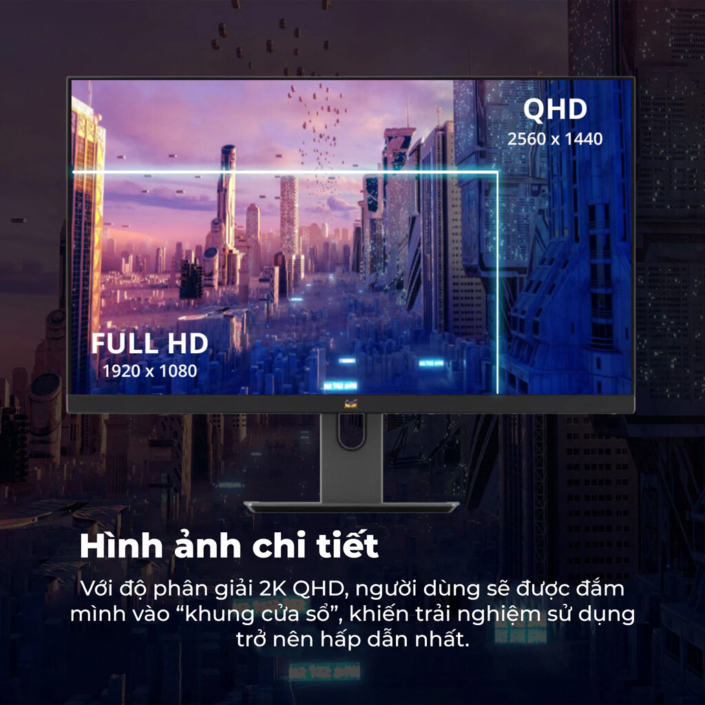Độ phân giải 2K 2560 x 1440 hiển thị mọi chi tiết của nội dung. Tấm nền IPS mang tới góc nhìn 178* cực rộng. Cho dù góc nhìn không phải chính diện vào màn nhưng chất lượng màu sắc vẫn được giữ nguyên đáng kể.