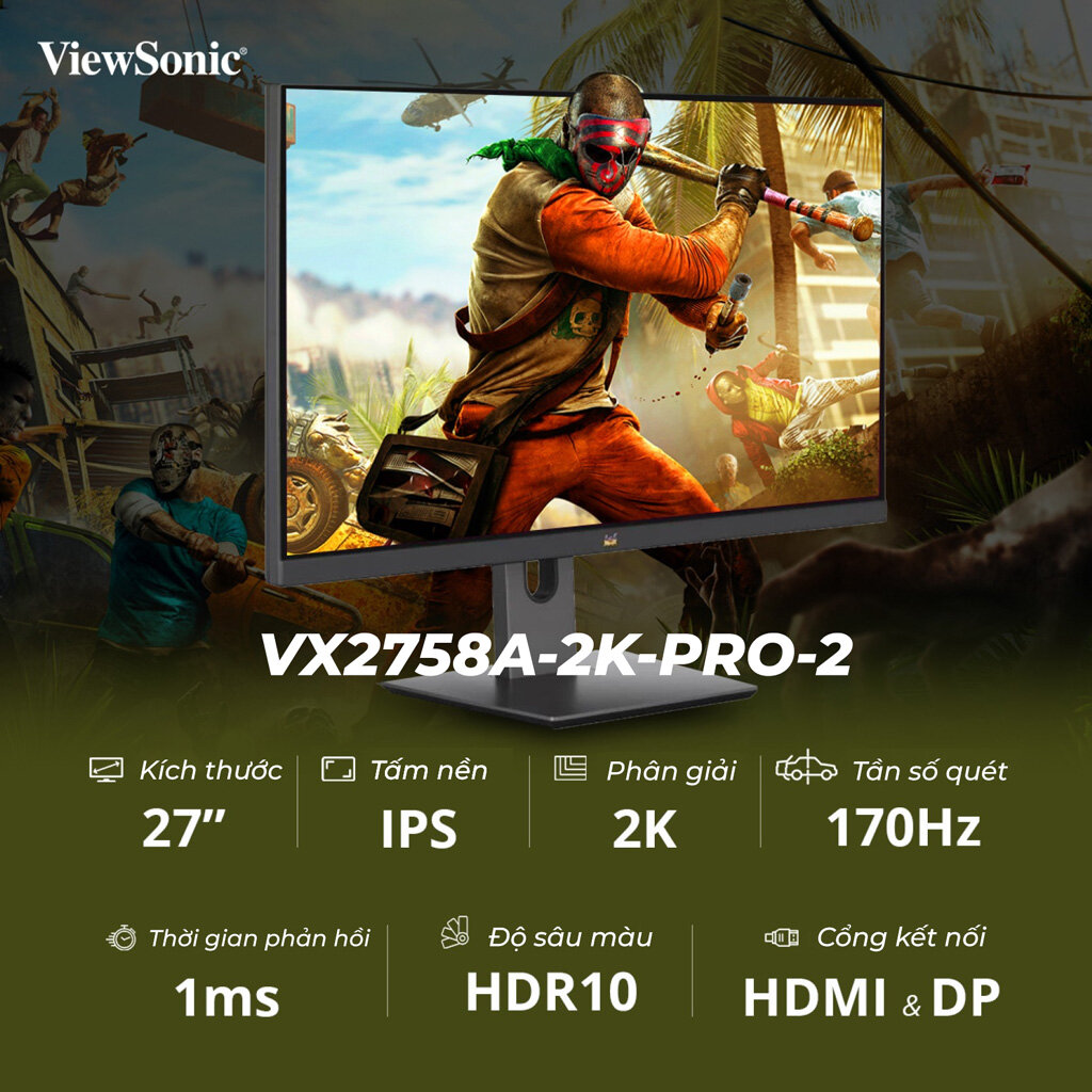 ViewSonic VX2758A-2K-PRO-2 là một trong những chiếc màn hình đáng giá trong phân khúc tầm trung. Màn hình sở hữu độ phân giải 2K 2560 x 1440 sắc nét đến từng chi tiết. Tần số quét cao của màn hình giúp các chuyển động trên từng khung cảnh mượt mà hơn. Không những đem lại giá trị cao khi giải trí, màn hình còn tăng hiệu năng khi thực hiện các thao tác biên tập nội dung. Sản phẩm còn hỗ trợ kết nối với các hệ máy console cùng PC cùng lúc. Thao tác chuyển đổi tín hiệu nhanh gọn phù hợp với góc giải trí tối giản.