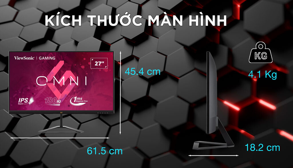 Viewsonic VX2779-HD-PRO trang bị tấm nền IPS có kích thước 27 inch. Độ phân giải tiêu chuẩn FHD 1920 x 1080, hiển thị nội dung tương đối chi tiết. Tấm nền IPS mang tới góc nhìn 178* cực rộng. Cho dù góc nhìn không phải chính diện vào màn nhưng chất lượng màu sắc vẫn được giữ nguyên đáng kể. Kế đó là tần số quét 180Hz nhỉnh hơn đa phần các đối thủ trong tầm giá. Chuyển động được trau chuốt hơn, tạo lợi thế cần có trong mỗi ván đấu đầy tính cạnh tranh. Độ trễ 1ms MPRT đẩy lùi hiện tượng lưu lại ảnh. Tăng trải nghiệm trong suốt quá trình sử dụng sản phẩm.