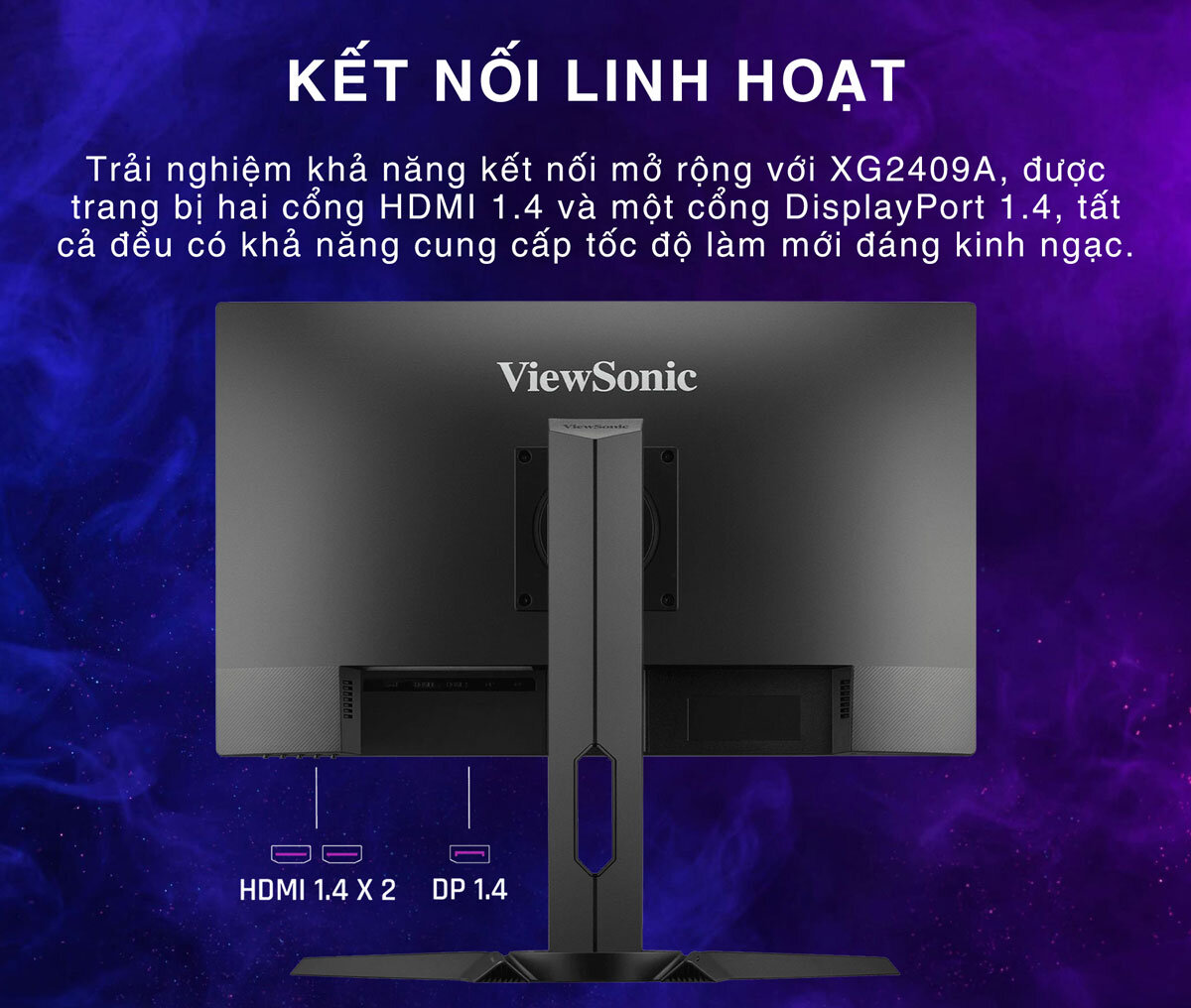 XG2409A được trang bị đầy đủ các cổng kết nối phổ biến như HDMI, DisplayPort, giúp bạn dễ dàng kết nối với máy tính, laptop, console và các thiết bị ngoại vi khác.