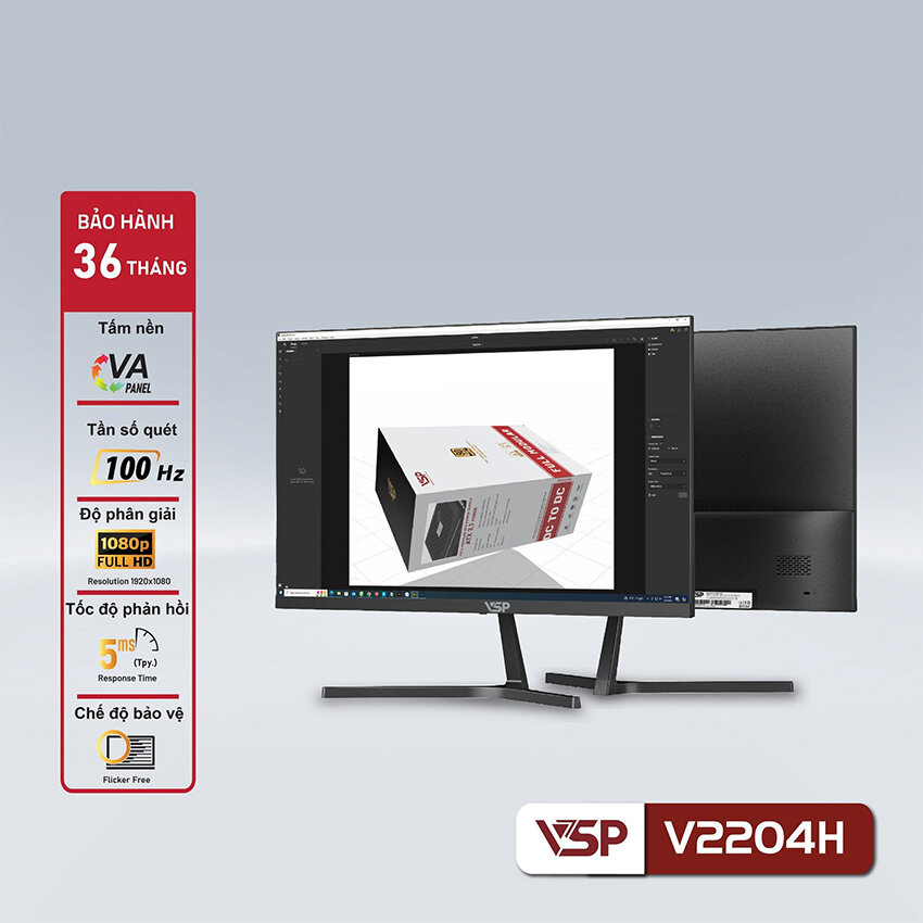 Với tần số quét 100Hz và thời gian phản hồi 5ms, màn hình VSP V2204H đảm bảo hình ảnh mượt mà và không bị giật lag. Công nghệ đồng bộ FreeSync giúp loại bỏ hiện tượng xé hình, mang lại trải nghiệm chơi game và xem phim tuyệt vời. Những tính năng này đặc biệt hữu ích cho các game thủ và những người làm việc với các ứng dụng đồ họa nặng.