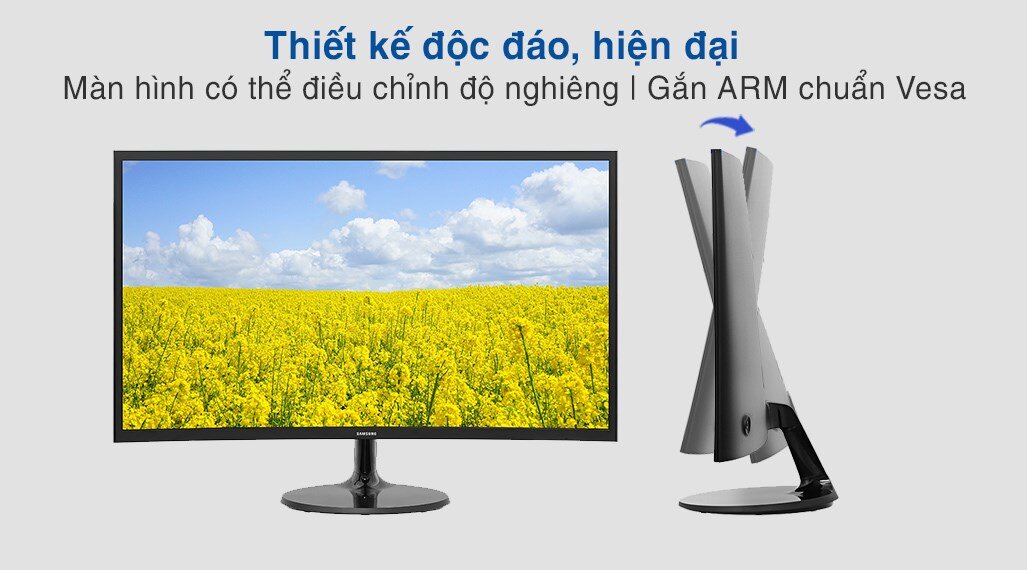 Màn hình Samsung LS27C360 giúp làm việc hiệu quả, mắt luôn thoải mái. Trang bị tấm nền VA giúp nội dung tập trung vào người dùng. Nhờ hình dạng cong, màn hình tăng khả năng hiển thị các hoạt ảnh, phim ảnh và trò chơi trở nên sống động hơn.. Cải thiện trải nghiệm xem và giảm ánh sáng phản chiếu từ môi trường xung quanh.