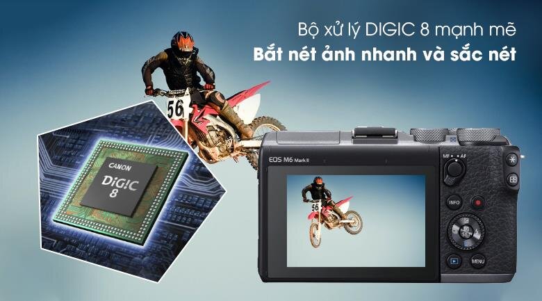 Trang bị bộ xử lý DIGIC 8 mạnh mẽ, xử lý nhanh, bắt trọn khoảnh khắc với tốc độ chụp liên tiếp lên đến 14 hình/giây
