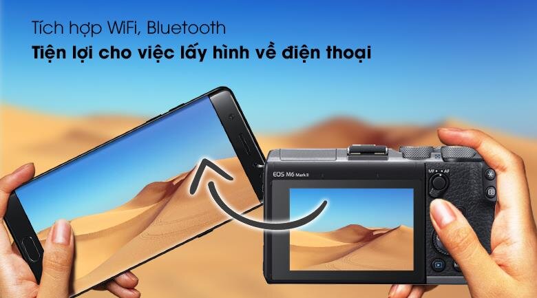 Kết nối với điện thoại để điều khiển máy ảnh, lấy hình về điện thoại dễ dàng nhờ được trang bị WiFi, Bluetooth