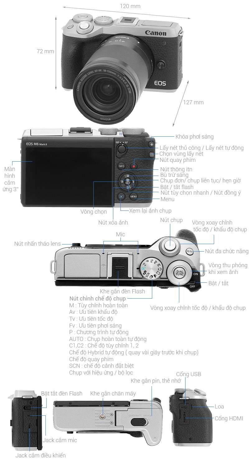 Thông số kỹ thuật chi tiết Máy ảnh Mirrorless Canon EOS M6 Mark II Kit 18-150mm Bạc