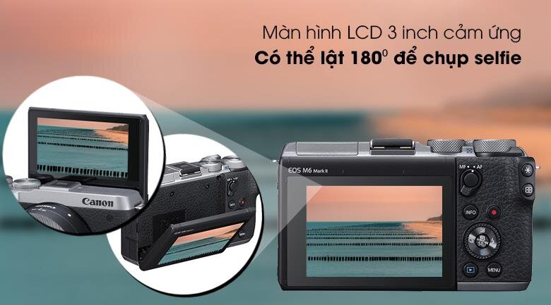 Bên cạnh việc có thể lật lên 180⁰ và nghiêng xuống 45⁰ thì màn hình của máy ảnh Canon EOS M6 Mark II còn cho khả năng hiển thị cực kỳ sắc nét với độ phân giải đến 1.040.000 điểm ảnh.