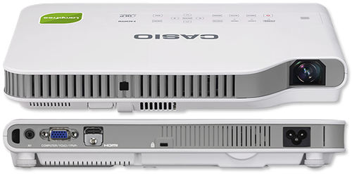 Kiểu dáng di động đổi mới của CASIO đưa đến kết quả là máy chiếu kích thước A4, chỉ dày 43mm và nặng 2,3kg. Có thể đút gọn gàng chiếc máy chiếu này vào chiếc cặp mỏng và dễ dàng mang theo bạn đến nơi thuyết trình bên ngoài văn phòng.
