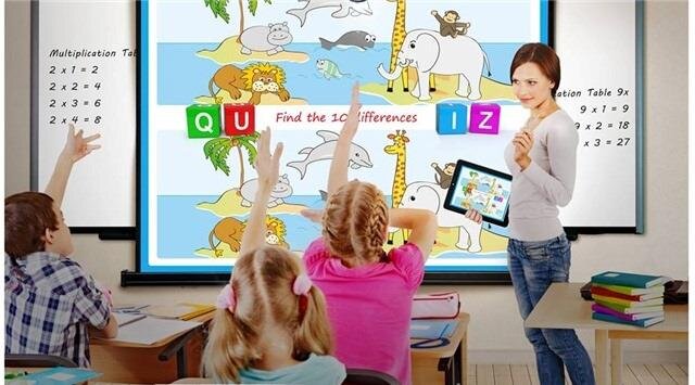 Trong lớp học bạn có thể cảm nhận được sự hào hứng của các bé trong giờ học có máy chiếu kết hợp màn chiếu, tạo cảm giác sang tạo và phát biểu bài tích cực hơn