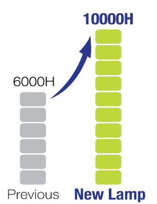 Bộ điều khiển đèn kiểm soát công suất tiêu thụ điện một cách tối ưu, giúp tuổi thọ của đèn đạt đến 10,000H ở chế độ trình chiếu thấp. Chu kỳ thay thế bóng đèn được hiarm xuống, tiết kiệm được chi phí và thời gian