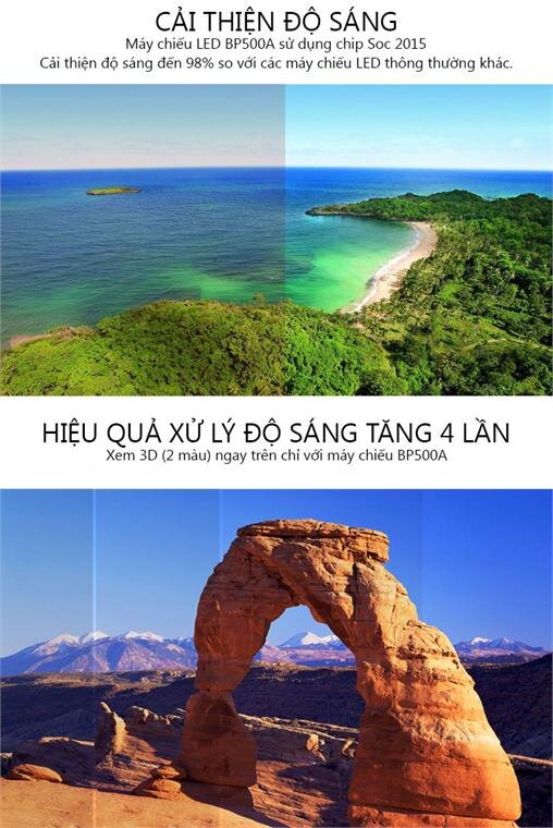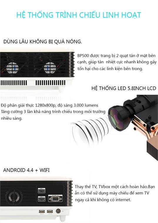 Model BP500A khác so với BP600 chủ yếu ở tính năng WIFI và sử dụng hệ điều hành Android 4.4. Lens của BP500A sử dụng với tấm nền 5.8inch LCD cho chiếu rộng, vốn thích hợp với điều kiện nhỏ hẹp của phòng chiếu cho thị trường châu Âu và châu Á.
