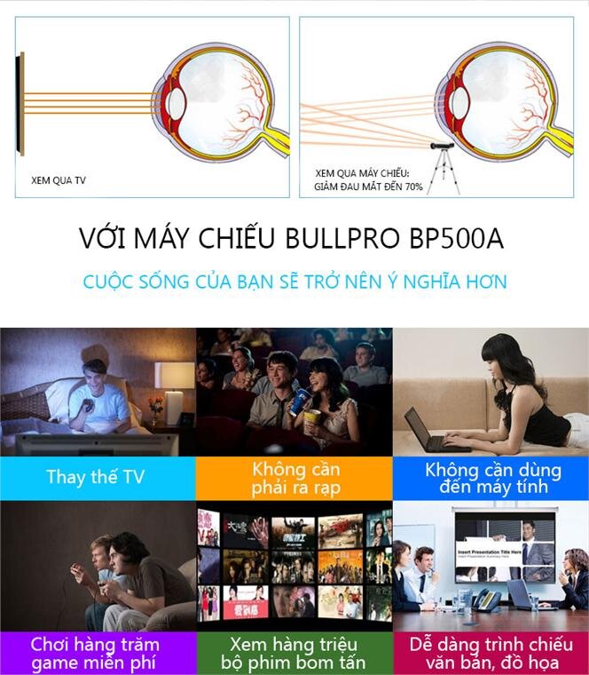 Giới thiệu: Máy chiếu LED HD 720P BullPro BP500A -Hỗ trợ 1080P