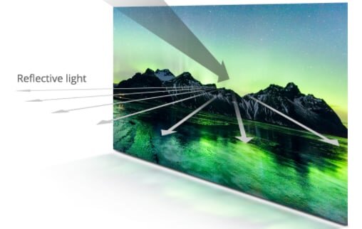 Được thiết kế khả năng bảo vệ mắt, ánh sáng chiếu phản chiếu mang lại trải nghiệm xem hầu như không có ánh sáng xanh để giảm mỏi mắt trong thời gian xem kéo dài.