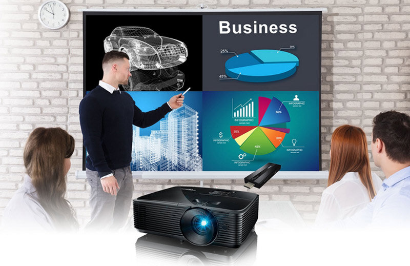Tích hợp HDCast Pro Dongle Máy chiếu Optoma SA510 có khóa HDCast Pro tùy chọn, bạn có thể kết nối không dây với máy tính xách tay, máy tính bảng hoặc thiết bị di động của mình và chia sẻ video, ảnh hoặc tài liệu phát trực tuyến lên màn hình lớn. Được thiết kế đặc biệt cho môi trường kinh doanh và giáo dục, tối đa 4 máy tính có thể chiếu nội dung cùng một lúc.