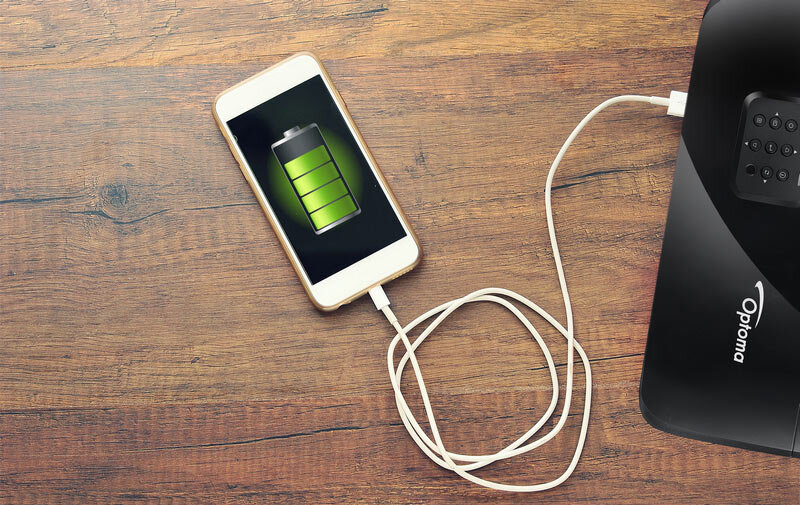Tích hợp cổng USB sạc ngược thiết bị điện tử Đầu ra nguồn USB tích hợp (5V / 1.5A) được tích hợp trên Máy chiếu Optoma SA510 có thể được sử dụng để cung cấp năng lượng cho các thiết bị phát trực tuyến của bạn như Chromecast, HDCast Pro hoặc thiết bị di động. Sạc thiết bị di động của bạn chỉ bằng cách cắm cáp sạc USB của bạn.