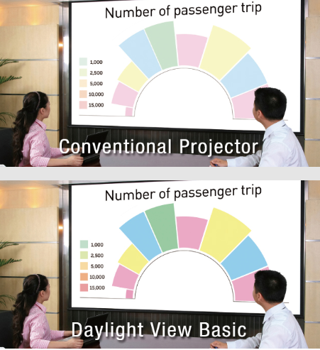 Công nghệ ánh sáng ban ngày Công nghệ này giúp cho hình ảnh được trình chiếu sáng hơn, rõ ràng, dễ nhìn hơn với sự tăng cường chi tiết, đặc biệt cải thiện màu đen sâu hơn khi hoạt động trong môi trường có ánh sáng mạnh như phòng hợp, sự kiện. Thêm nữa, máy chiếu Panasonic PT-VZ585N còn được tích hợp khả năng cảm biến ánh sáng gúp màu sắc hình ảnh phát ra sẽ luôn phù hợp với ánh sáng bên ngoài.