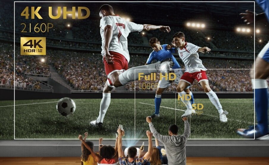 Máy chiếu Benq TK800M 4K HDR thực sự cho thể thao trực tiếp. Để thưởng thức trọn vẹn trò chơi tuyệt đẹp tại các bữa tiệc bóng đá trong phòng khách sáng sủa hoặc sân sau BBQ, một hình ảnh 4K UHD 8,3 triệu pixel khổng lồ với 100 màu sắc sống động trong bất kỳ ánh sáng nào đều không thể đánh bại.