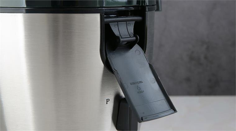 Sau khi ép xong, bạn mở miệng vòi, có thể xoay 360 độ đúng hướng cầm cốc tiện dụng. Chức năng chốt khóa vòi nếu bạn không muốn để nước chảy trực tiếp ra cốc, ly. Vệ sinh miệng vòi bằng cách dùng bàn chải nhỏ để cọ rữa.