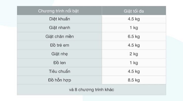 Bao gồm 16 chu kỳ giặt khác nhau để đáp ứng nhiều nhu cầu khác nhau