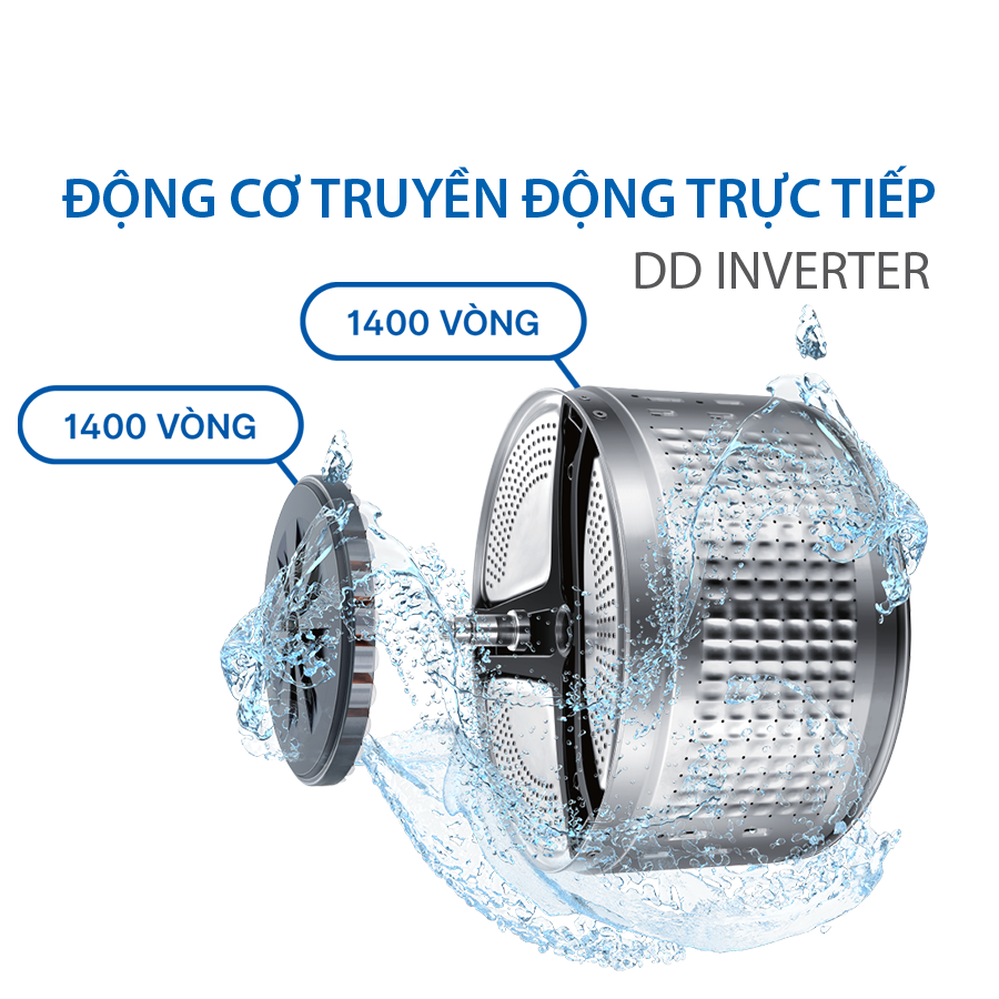 Động cơ truyền động trực tiếp với công nghệ tiết kiệm năng lượng Máy giặt vận hành êm ái và hiệu quả hơn với sự hỗ trợ của DD Inverter, giúp giảm lượng điện sử dụng của gia đình.