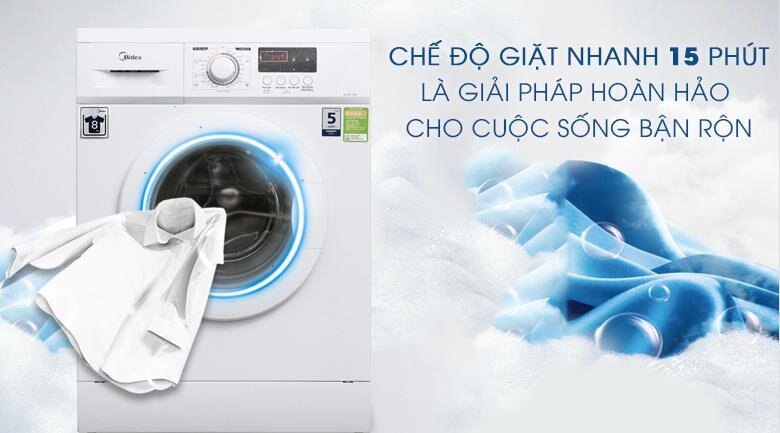 Chế độ giặt nhanh 15 phút thích hợp giặt với khoảng 2 kg đồ mỏng, nhẹ