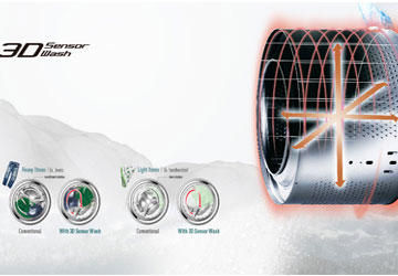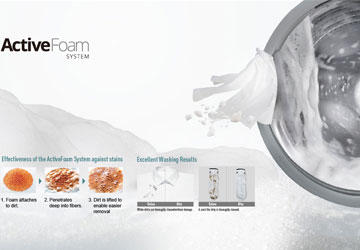 Máy giặt Panasonic NA-128VG5WVT với công nghệ giặt Active Foam tạo bọt siêu mịn mang lại hiệu quả giặt tuyệt vời. Hệ thống Active Foam biến bột giặt thành bọt mịn bao phủ lên toàn bộ quần áo đánh bay tất cả các vết bẩn dễ dàng kể cả những vết bẩn cứng đầu nhất. CẢM BIẾN 3D