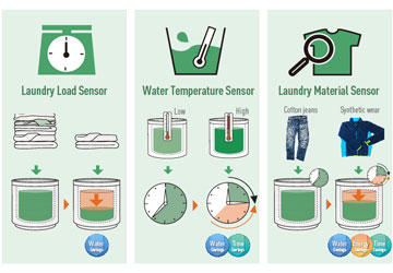 Máy giặt Panasonic NA-128VG5WVTT trang bị cảm biến 3D phát hiện chuyển động của quần áo bên trong lồng trong quá trình giặt và tự động điều chỉnh tốc độ cao của lồng giặt bằng công nghệ biến tần. Với công nghệ này, quần áo có khối lượng nặng được nâng lên đỉnh và tránh tình trạng quần áo nhẹ bị dính vào đáy lồng giặt CẢM BIẾN ECONAVI